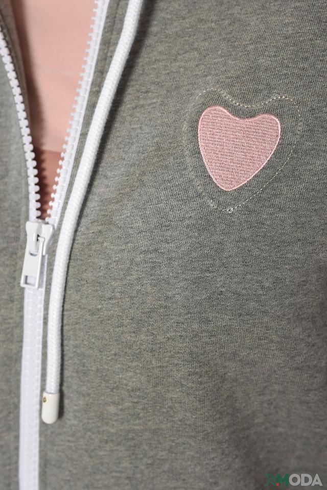 Куртка имеет удобную застежку-молнию, капюшон со шнурками и манжеты на рукавах, обеспечивающие дополнительный комфорт. Декоративное сердечко на спине придает изделию игривость и индивидуальность.