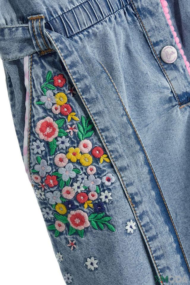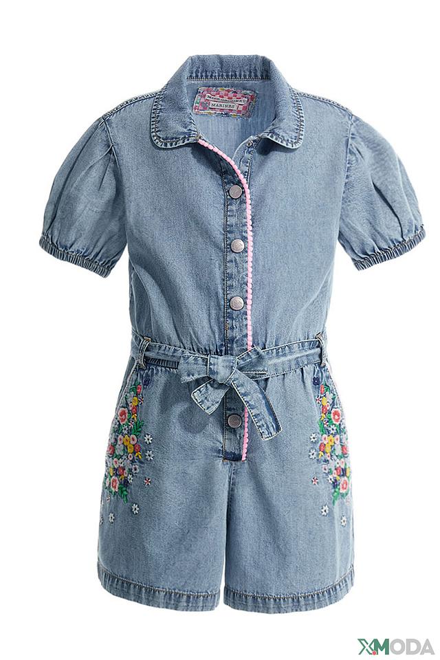 Джинсовый комбинезон Original Marines голубого цвета с яркой цветочной вышивкой – стильный и удобный выбор для маленькой модницы. Удобный крой и 100% хлопковый состав обеспечивают комфорт в течение всего дня. Состав: хлопок 100%