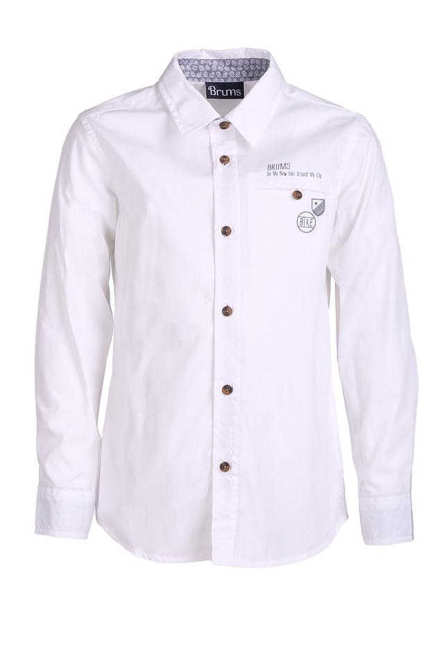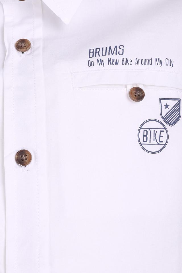 Белая рубашка Brums для мальчика с оригинальным принтом и декоративными накладками на рукавах. Стильный и удобный вариант для повседневной носки. Состав: см. на вшивном ярлыке 0%