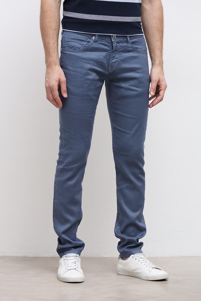Мужские джинсы Baldessarini голубого цвета в современном силуэте Slim Fit. Модель выполнена из высококачественного сочетания льна, хлопка и эластана, обеспечивающего комфорт и удобство в носке. Состав: лен 51%, хлопок 46%, эластан 3%