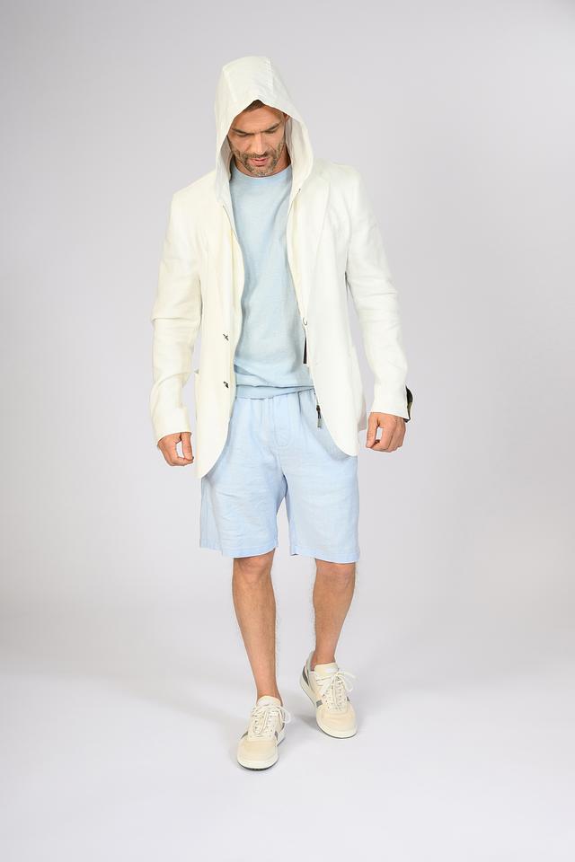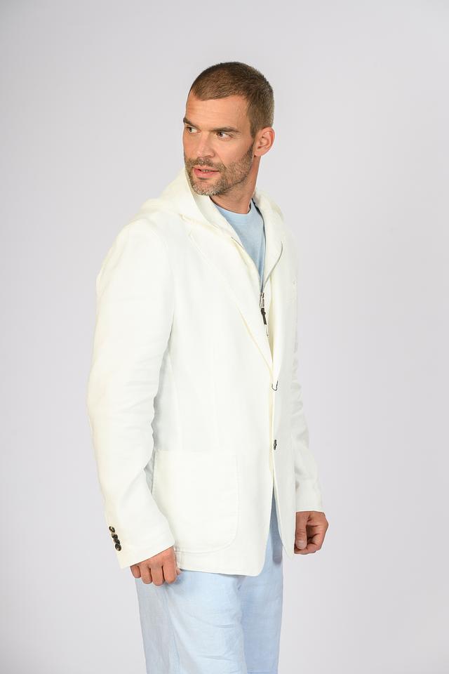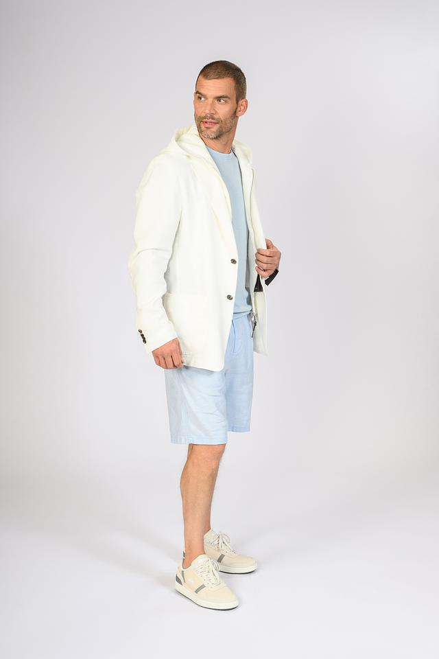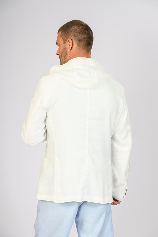 Мужской пиджак от Windsor выполнен в светло-бежевом цвете. Модель имеет классический крой с лацканами и дополнена капюшоном, что придает ей современный и непринужденный вид.