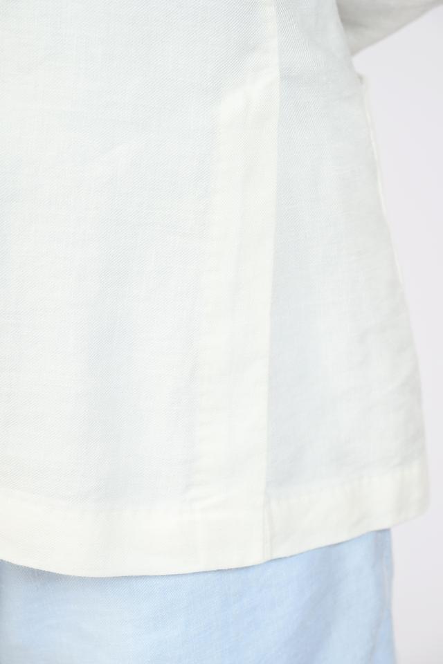 Состав ткани: 58% лен, 39% луоселл, 3% эластан. Лен обеспечивает воздухопроницаемость и комфорт, а эластан – небольшую эластичность. Пиджак станет отличным выбором для создания стильного и удобного образа в тёплое время года.