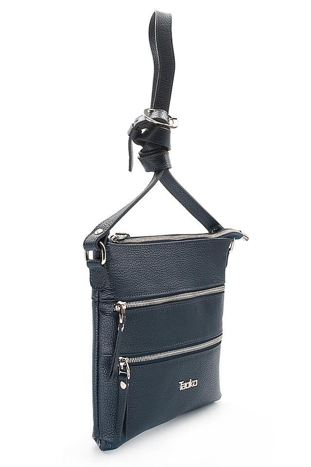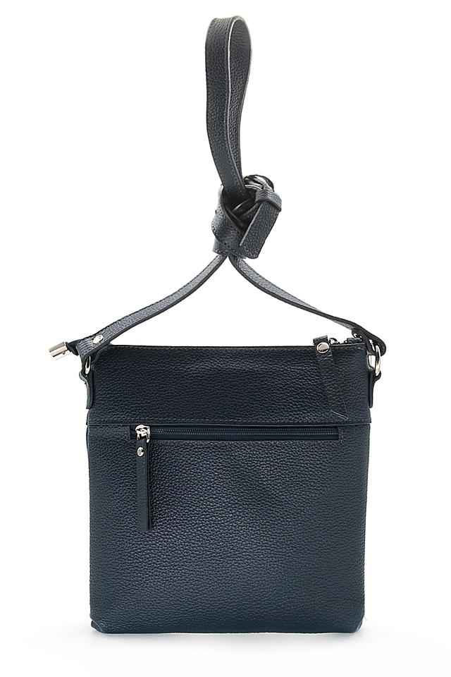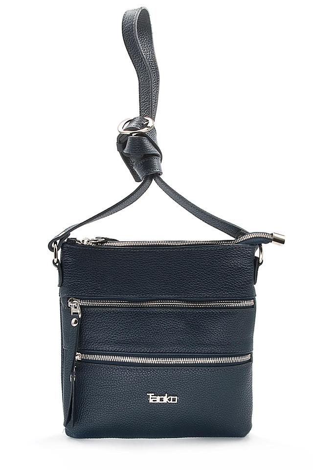 Текстурированная поверхность кожи придает сумке элегантный вид, а синий цвет делает ее универсальной и подходящей к любому образу. Регулируемый плечевой ремень обеспечивает комфорт при ношении. Подкладка выполнена из текстиля.