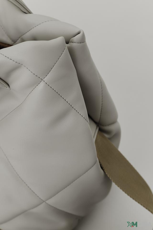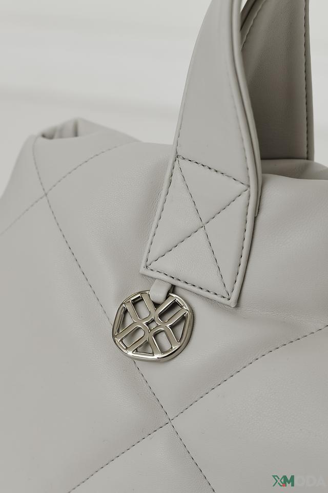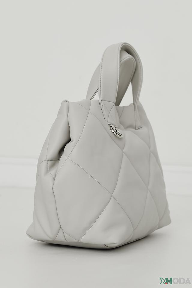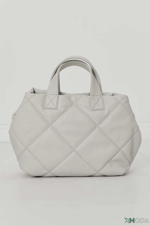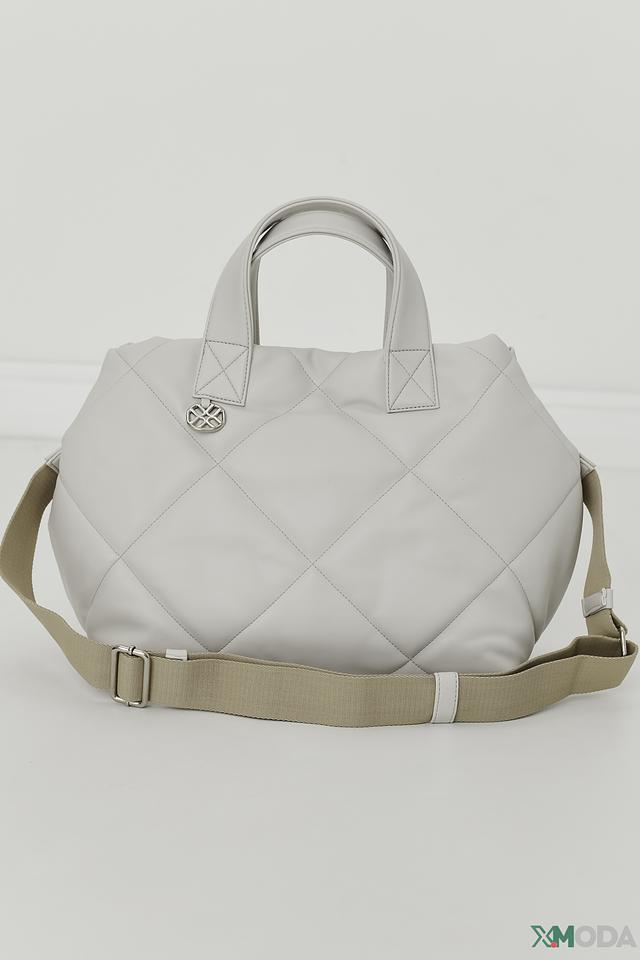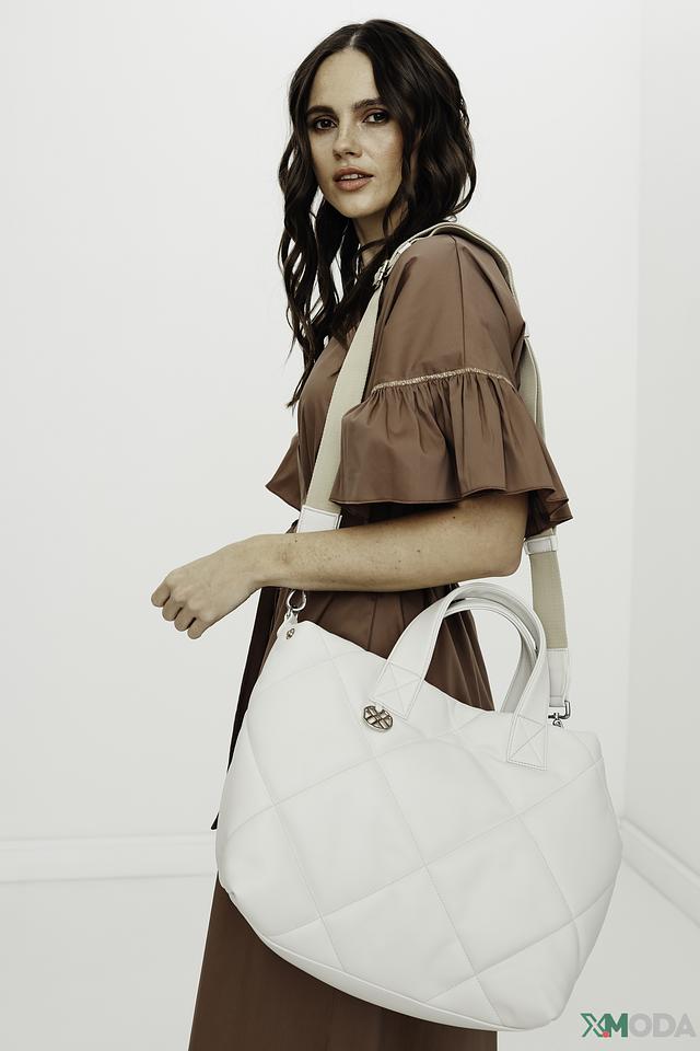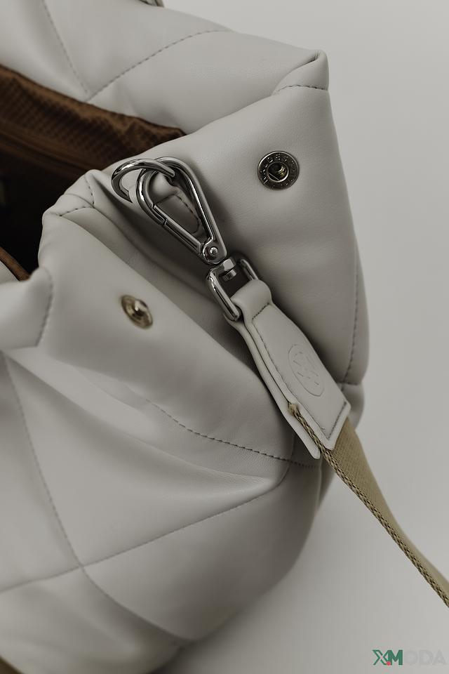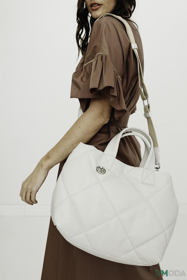 Сумка имеет стильный белый цвет и оригинальную стеганую фактуру, которая придает ей особый шарм. Две удобные ручки позволяют носить сумку в руке, а съемный плечевой ремень обеспечивает комфорт при ношении на плече или через плечо.