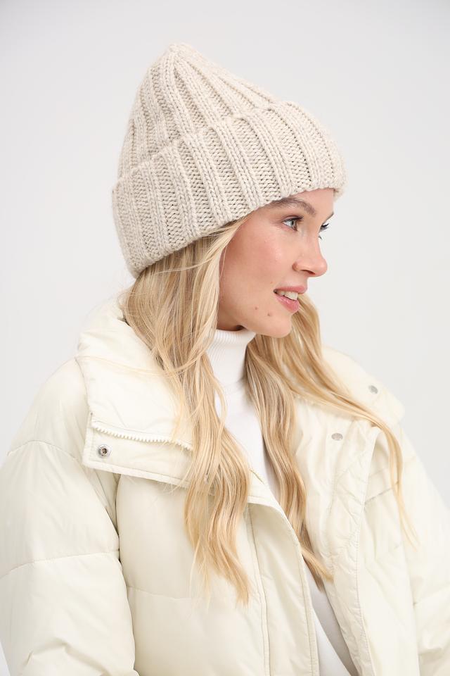 Бежевая вязаная шапка Adel из шерсти и акрила. Мягкий и тёплый аксессуар для создания уютного образа. Состав: 50% шерсть, 50% акрил. Состав: шерсть 50%, акрил 50%