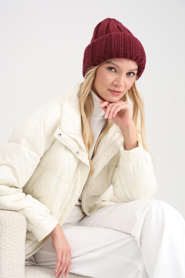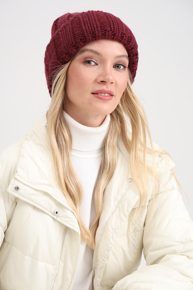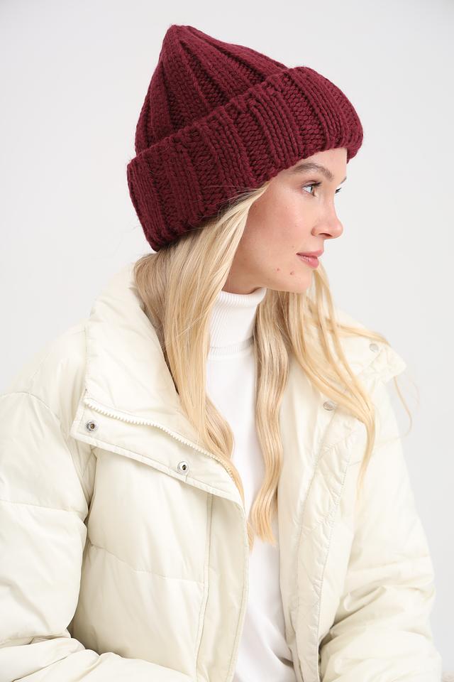 Вязаная шапка Adel бордового цвета – это стильный и теплый аксессуар для холодного времени года. Изготовлена из мягкой шерсти и акрила, обеспечивающих комфорт и удобство при носке. Идеально дополнит ваш повседневный образ. Состав: шерсть 50%, акрил 50%