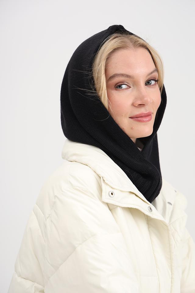Чёрная вязаная шапка Adel – это стильный и практичный аксессуар для защиты от холода. Изготовлена из мягкой шерсти и акрила, обеспечивая комфорт и тепло в холодную погоду. Удобный крой позволяет носить шапку как капюшон. Состав: шерсть 50%, акрил 50%