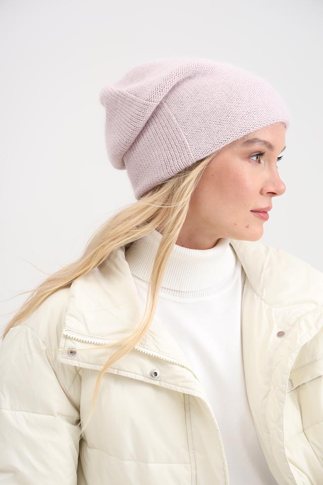 Нежно-пудровый цвет шапки легко сочетается с различными элементами гардероба, добавляя образу женственности и элегантности. Вязаная структура обеспечивает хорошую теплоизоляцию, защищая от холода в зимнее время.