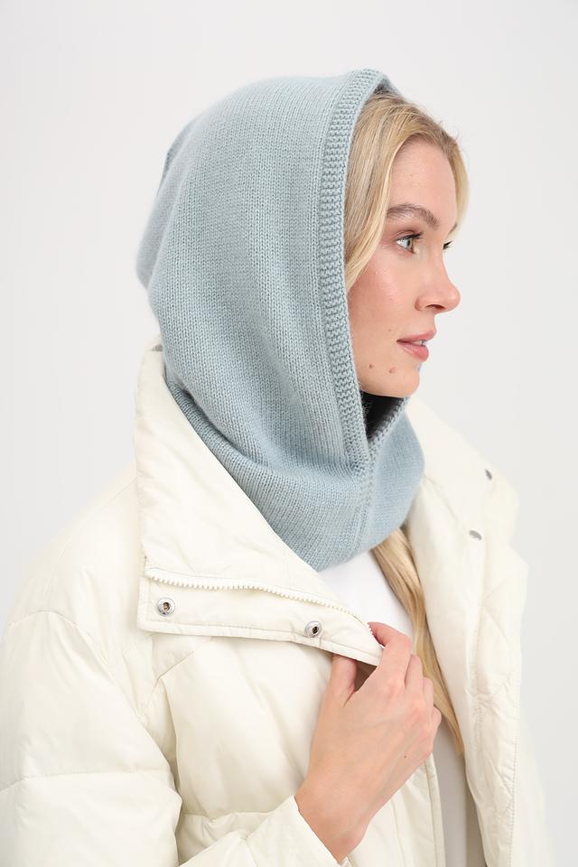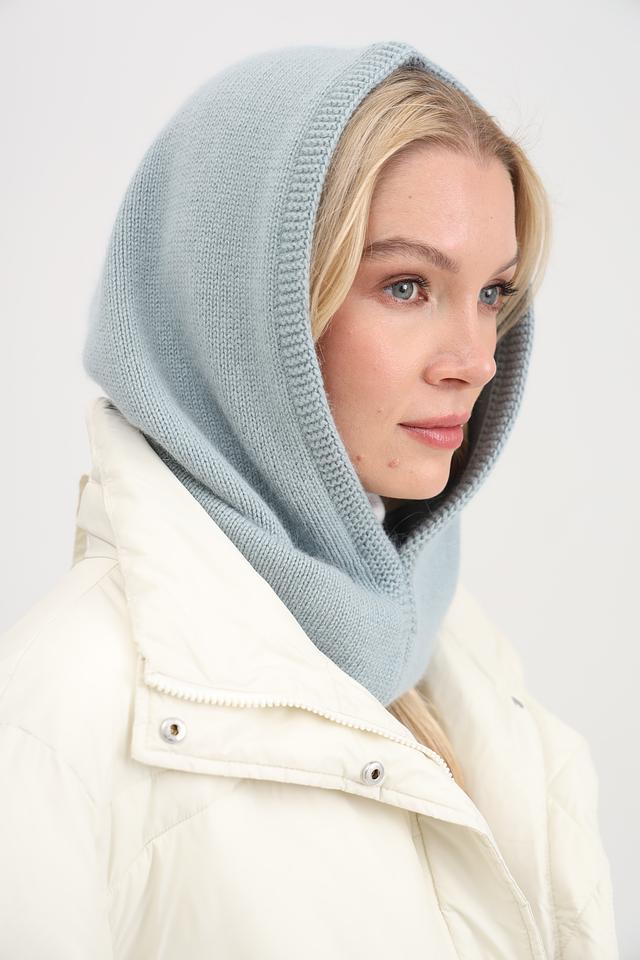 Голубая вязаная шапка-капюшон Adel выполнена из мягкого трикотажа. Аксессуар согреет в холодную погоду и дополнит ваш образ. Состав: нейлон 40%, вискоза 30%, ангора 20%, шерсть 10%