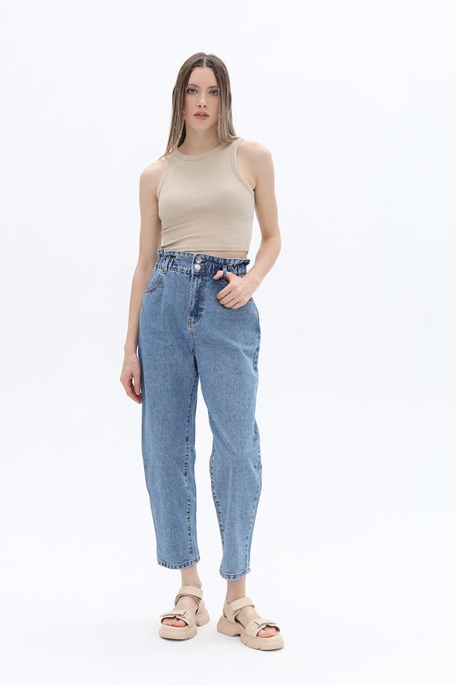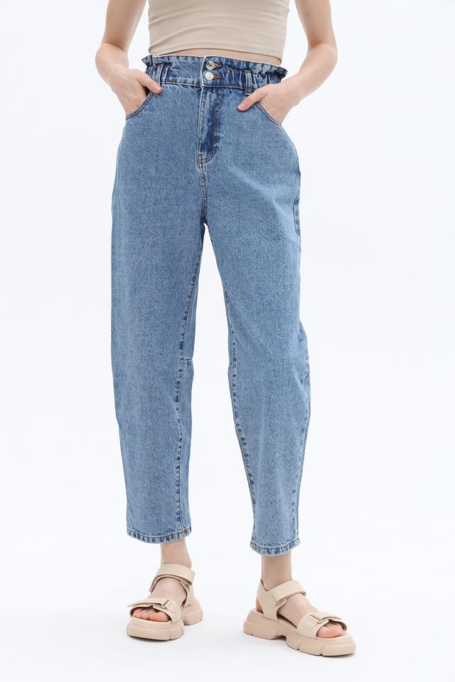 Женские джинсы Alcott голубого цвета с высокой посадкой и утягивающим поясом. Модель выполнена в свободном крое с зауженными к низу штанинами, что обеспечивает комфорт и стильный образ. Состав: хлопок 100%