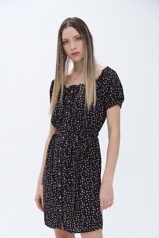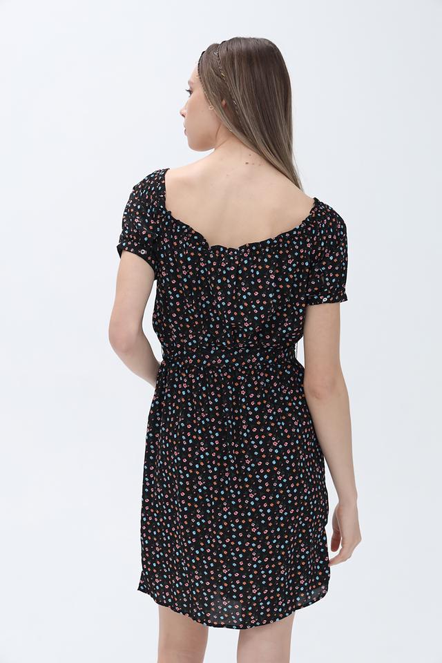 Платье Alcott чёрного цвета с ярким цветочным принтом – отличный выбор для создания лёгкого и женственного образа. Модель выполнена из полиэстера, имеет короткий рукав и эластичную резинку на талии, что обеспечивает комфортную посадку. Состав: полиэстер 100%