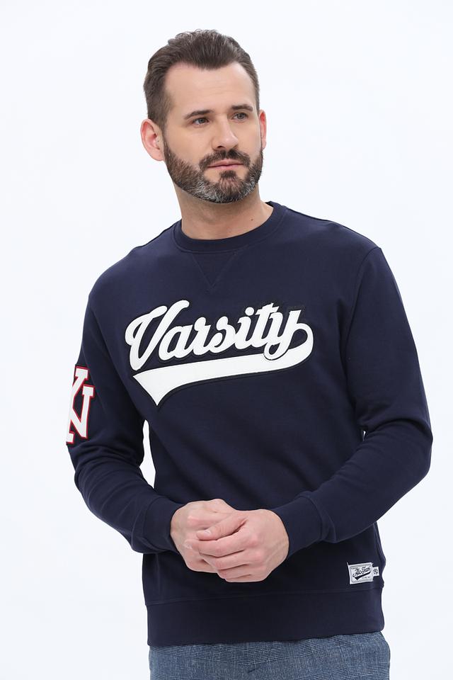 Мужской джемпер Alcott Varsity выполнен в классическом стиле с круглым вырезом горловины и длинными рукавами. Основной цвет – насыщенный синий, который отлично сочетается с белым принтом на груди и рукавах.