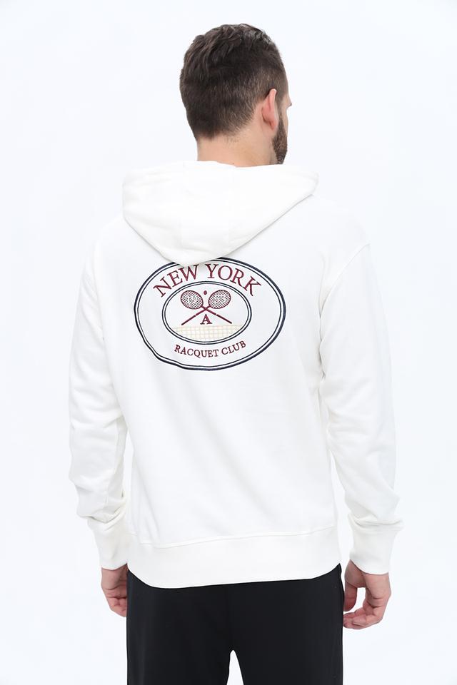 Толстовка имеет удобный капюшон и кенгуру-карман, что делает ее практичной и функциональной. На груди и спине размещена декоративная нашивка с логотипом бренда и надписью "NEW YORK RACQUET CLUB", добавляющая индивидуальности.