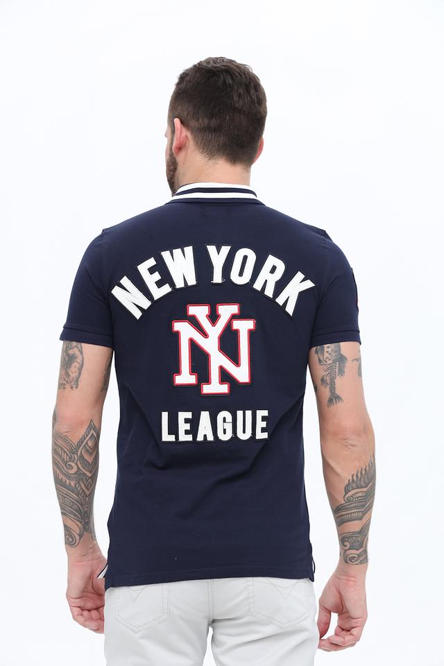 Синее поло Alcott с надписью "Varsity" — стильная и комфортная модель из 100% хлопка. Отличается ярким дизайном с логотипом и аппликацией на груди и спине, а также контрастной отделкой воротника. Состав: хлопок 100%