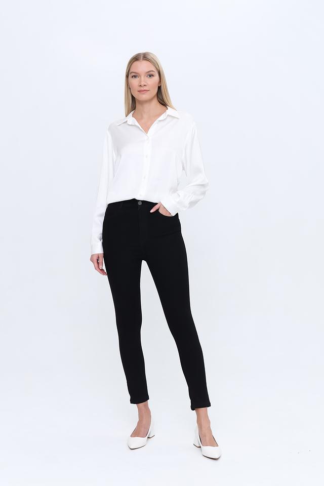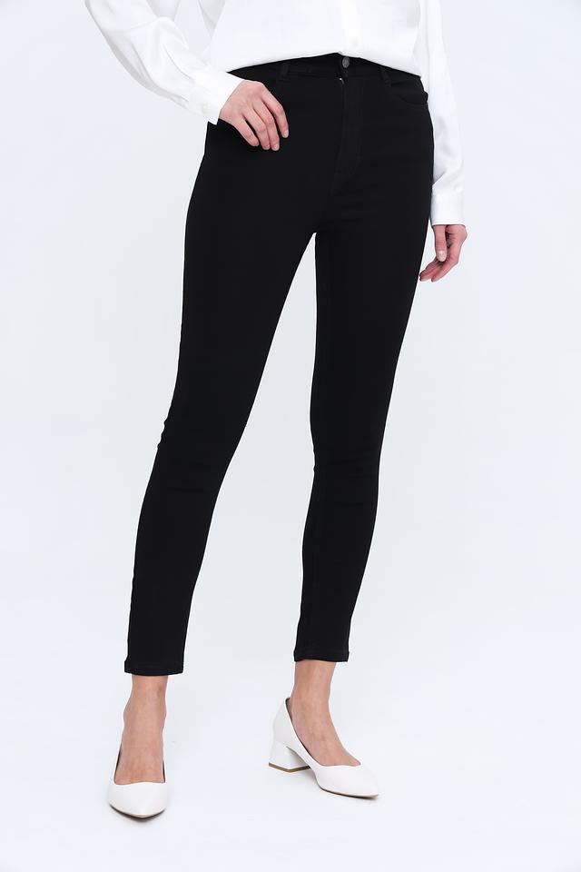 Брюки имеют облегающий крой скинни, который подчеркивает фигуру и создает современный силуэт. Высокая посадка визуально удлиняет ноги и обеспечивает комфортную посадку на талии.