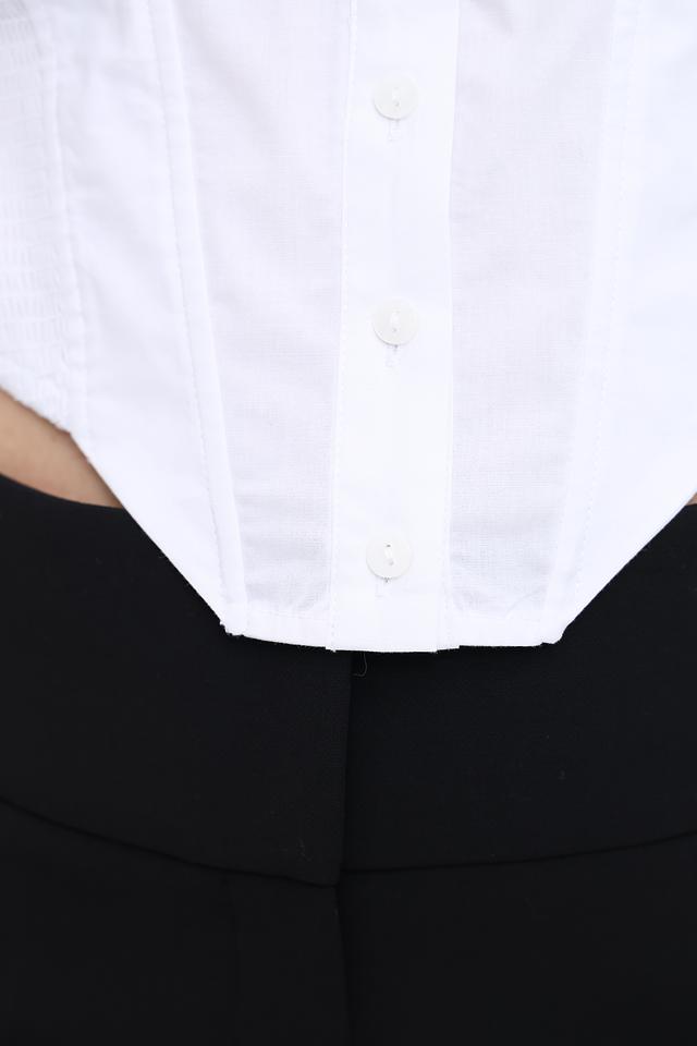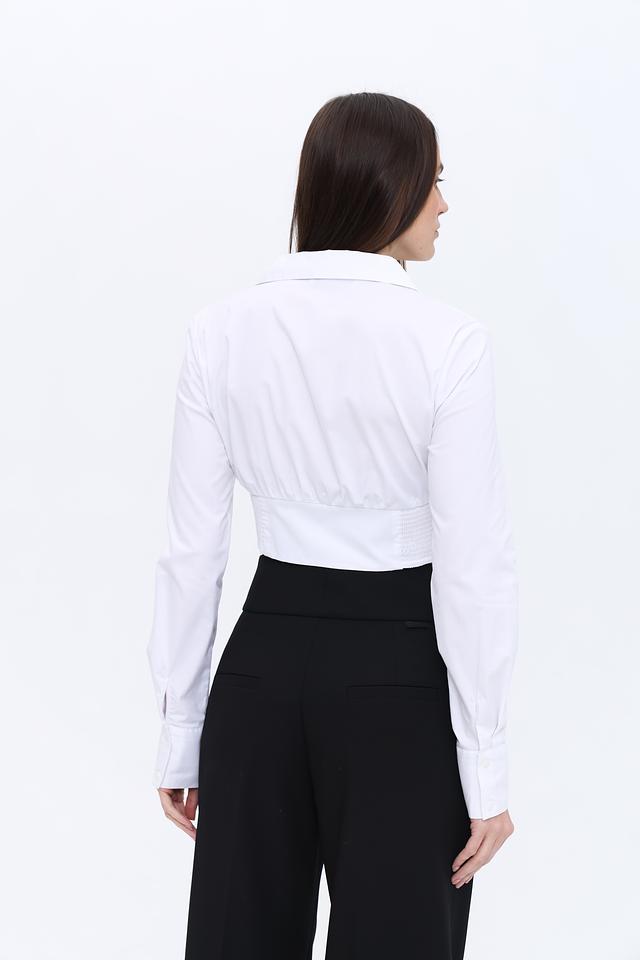 Блуза изготовлена из высококачественного хлопка с добавлением эластана (96% хлопок, 4% эластан), что обеспечивает приятные тактильные ощущения, комфорт и хорошую посадку по фигуре. Она отлично сохраняет форму и не мнется.