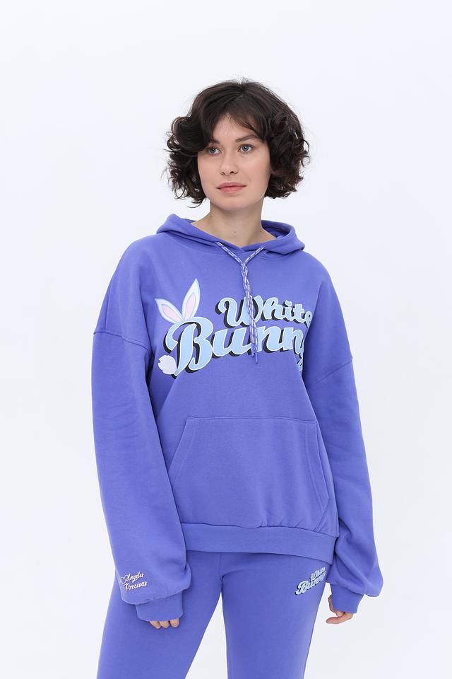 Эта женская толстовка от бренда Alcott станет отличным дополнением к вашему гардеробу. Модель выполнена в лавандовом цвете и украшена крупным принтом с изображением белого кролика и надписью "White Bunny".