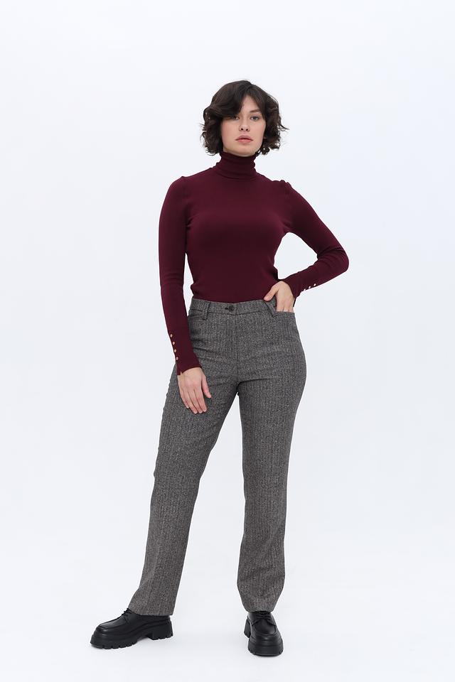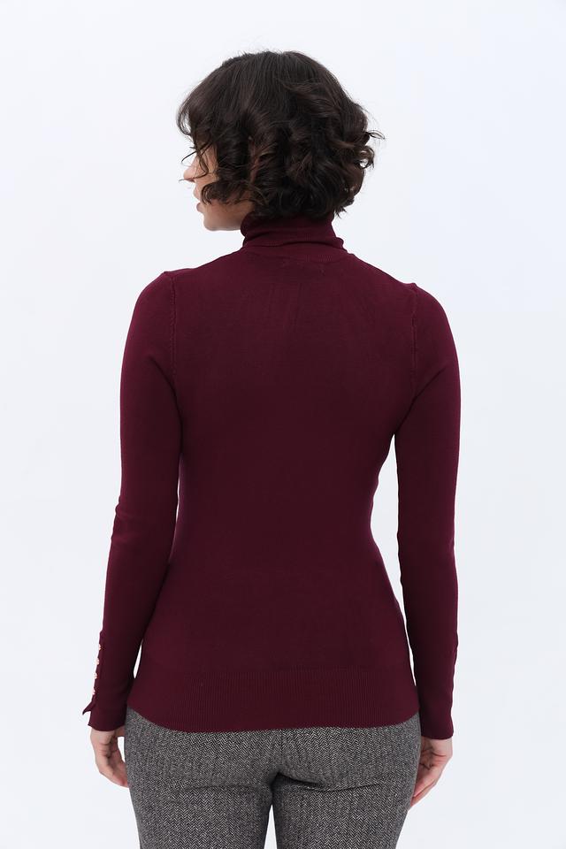Водолазка имеет приталенный силуэт, который подчеркивает фигуру. Высокий воротник защищает от холода, а длинные рукава с декоративными пуговицами добавляют изысканности образу.