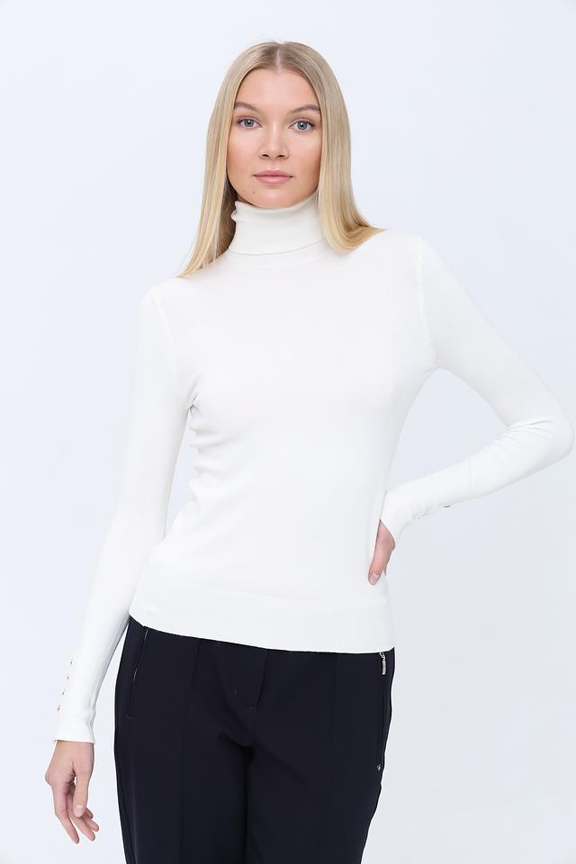 Белая водолазка Alcott женского силуэта, украшенная декоративными пуговицами на рукавах. Изготовлена из мягкого и приятного к телу трикотажа, обеспечивающего комфорт в носке. Идеально подходит для создания элегантных и стильных образов. Состав: вискоза 83%, полиамид 15%, эластан 2%