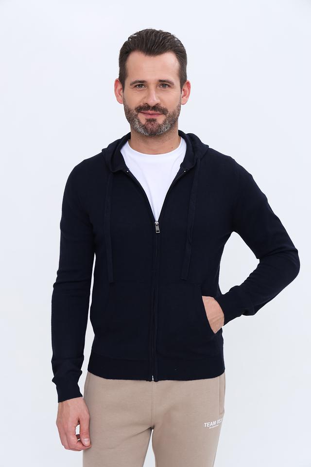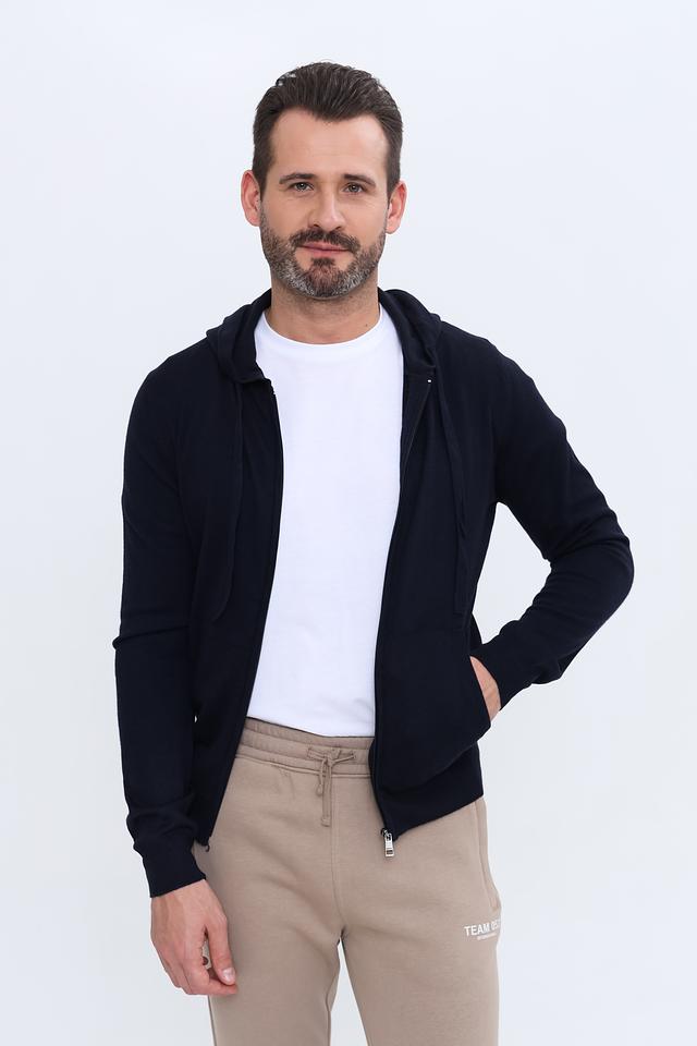 Мужской кардиган от бренда Alcott – это стильное и практичное решение для прохладной погоды. Модель выполнена в тёмно-синем цвете и имеет удобную застёжку на молнии, а также капюшон со шнурками для регулировки.