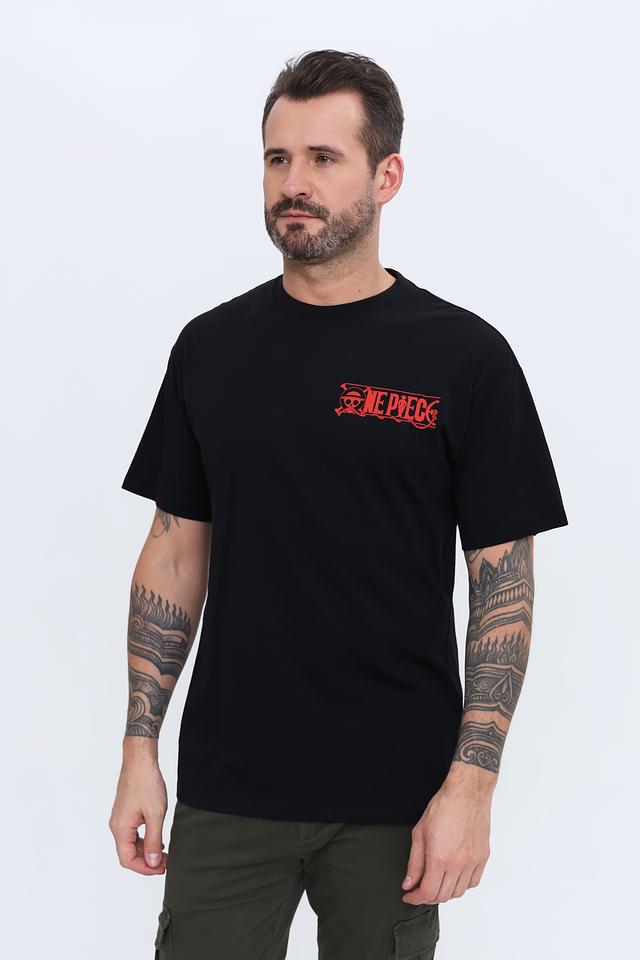 Чёрная мужская футболка Alcott с ярким принтом One Piece. Изготовлена из 100% хлопка, обеспечивая комфорт и воздухопроницаемость. Стильный дизайн с изображением персонажей популярного аниме. Состав: хлопок 100%