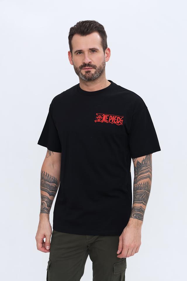 Мужская футболка Alcott – это отличный выбор для повседневной носки. Футболка выполнена в классическом черном цвете и украшена ярким принтом с изображением персонажей аниме One Piece на лицевой стороне и крупным изображением на спине.