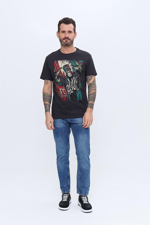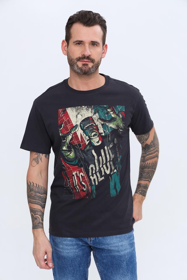Эта мужская футболка от Alcott – отличный выбор для тех, кто ценит комфорт и стиль. Футболка выполнена в классическом чёрном цвете и украшена ярким, детализированным принтом, который делает её уникальной.