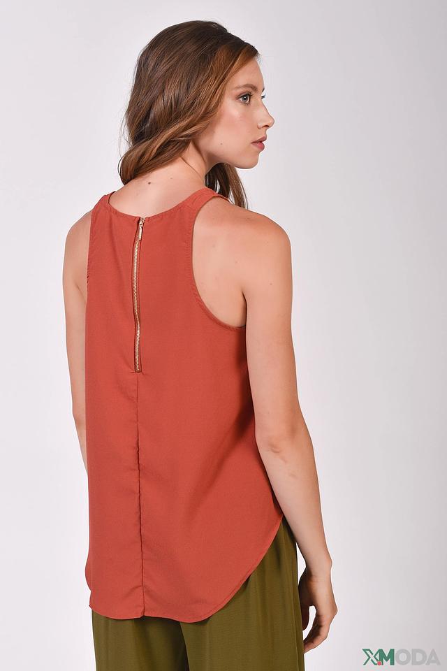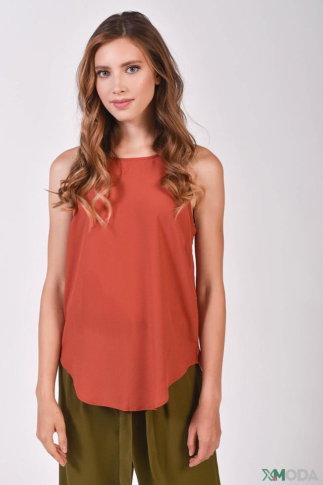Женская блуза Alcott терракотового цвета – это стильное и комфортное решение для создания повседневного образа. Модель выполнена из лёгкой ткани, имеет округлый вырез горловины и открытые плечи. Застёжка – молния в центре спинки. Состав: полиэстер 100%