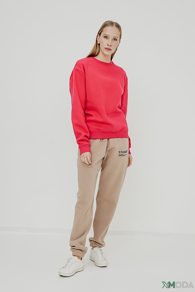 Джемпер имеет свободный крой оверсайз и круглый вырез горловины. Длинные рукава заканчиваются эластичными манжетами, а нижний край – широкой резинкой. Такая конструкция обеспечивает удобную посадку по фигуре и свободу движений.
