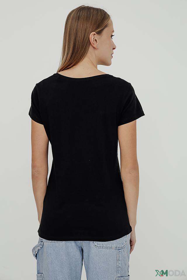 Футболка имеет прямой крой, который обеспечивает свободу движений и комфортную посадку по фигуре. Круглый вырез горловины и короткие рукава делают её идеальным выбором для тёплой погоды.