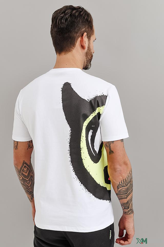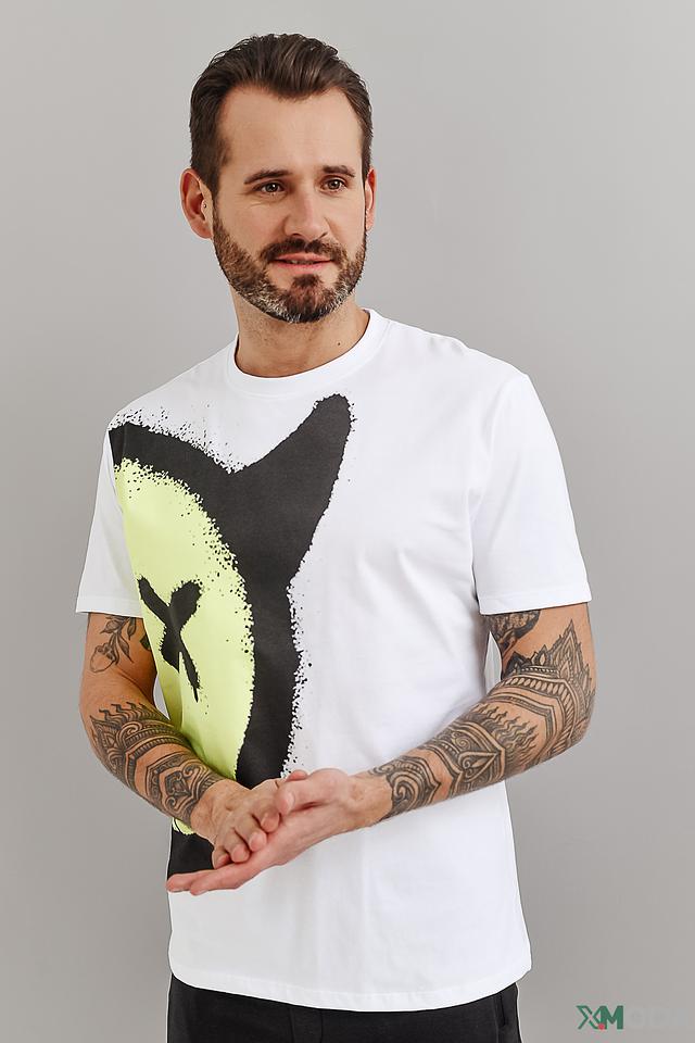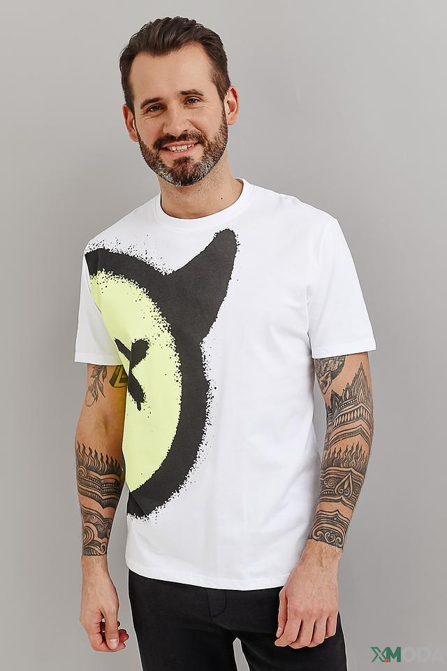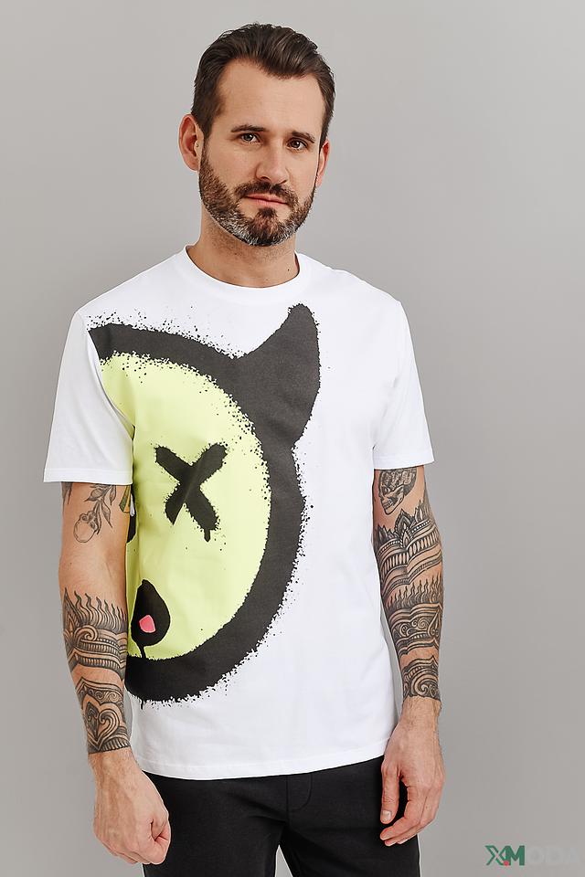 Эта футболка от Alcott станет ярким акцентом в вашем гардеробе. Выполнена в белом цвете и украшена эффектным принтом в виде лица, выполненным в чёрно-зелёной гамме.