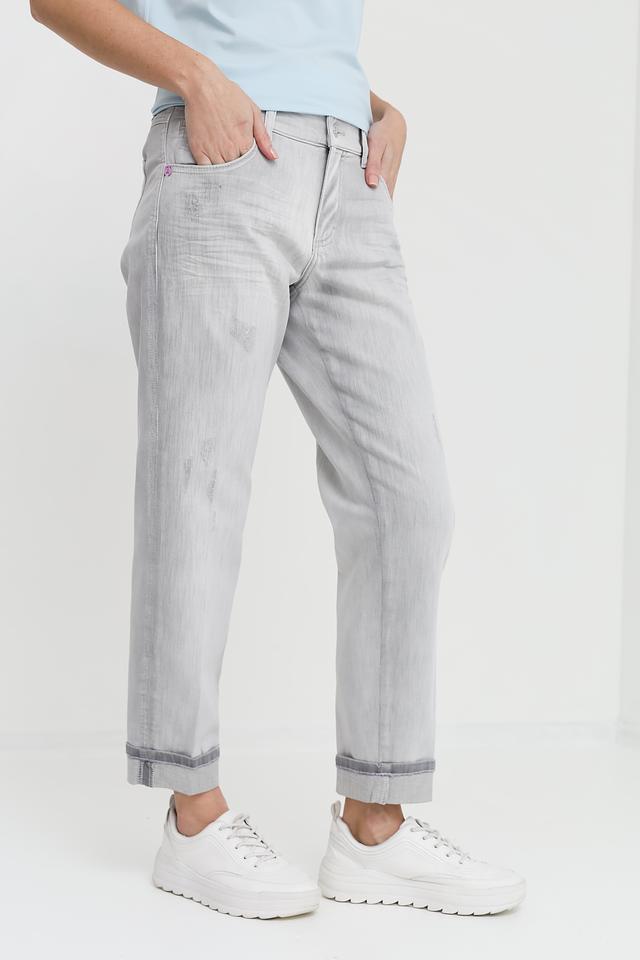 Серые джинсы Angels с эффектом потертостей и укороченным кроем – стильное и комфортное решение для повседневного образа. Модель выполнена из качественного хлопка с добавлением полиэстера и эластана для удобства носки. Состав: хлопок 91%, полиэстер 6%, эластан 3%