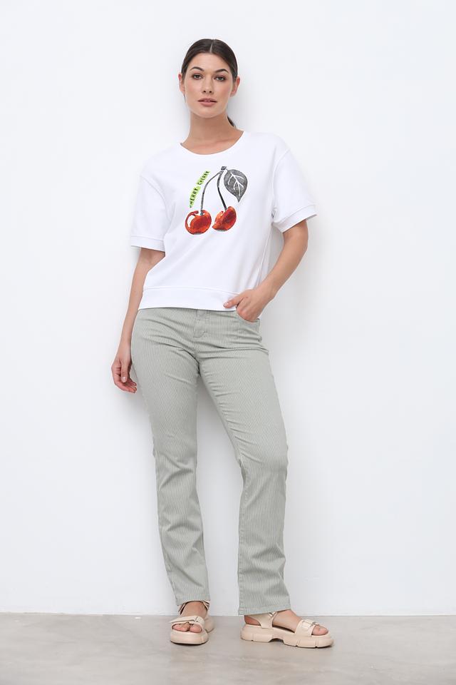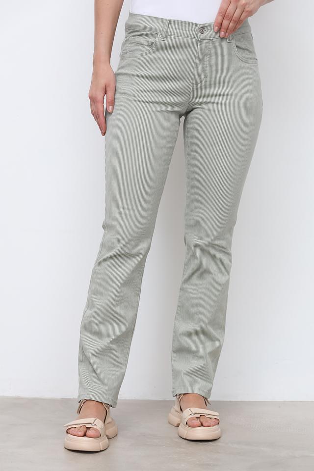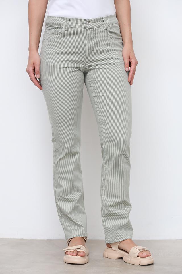 Женские брюки Angels зелёного цвета с вертикальной полоской – стильное и комфортное решение для повседневного гардероба. Классический крой и эластичный состав обеспечивают удобную посадку и свободу движений. Состав: хлопок 89%, полиэстер 8%, эластан 3%