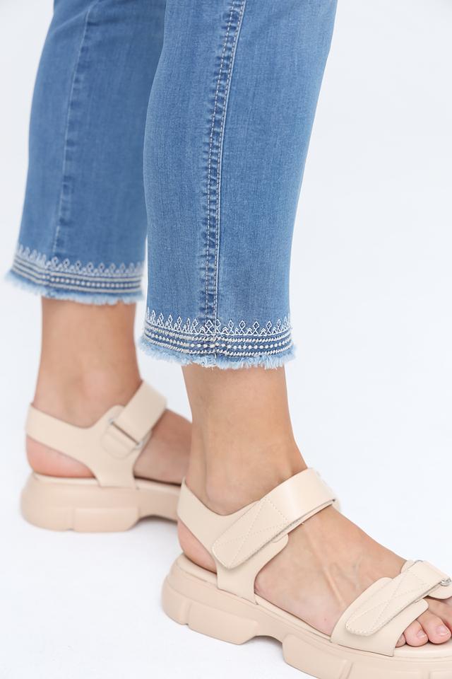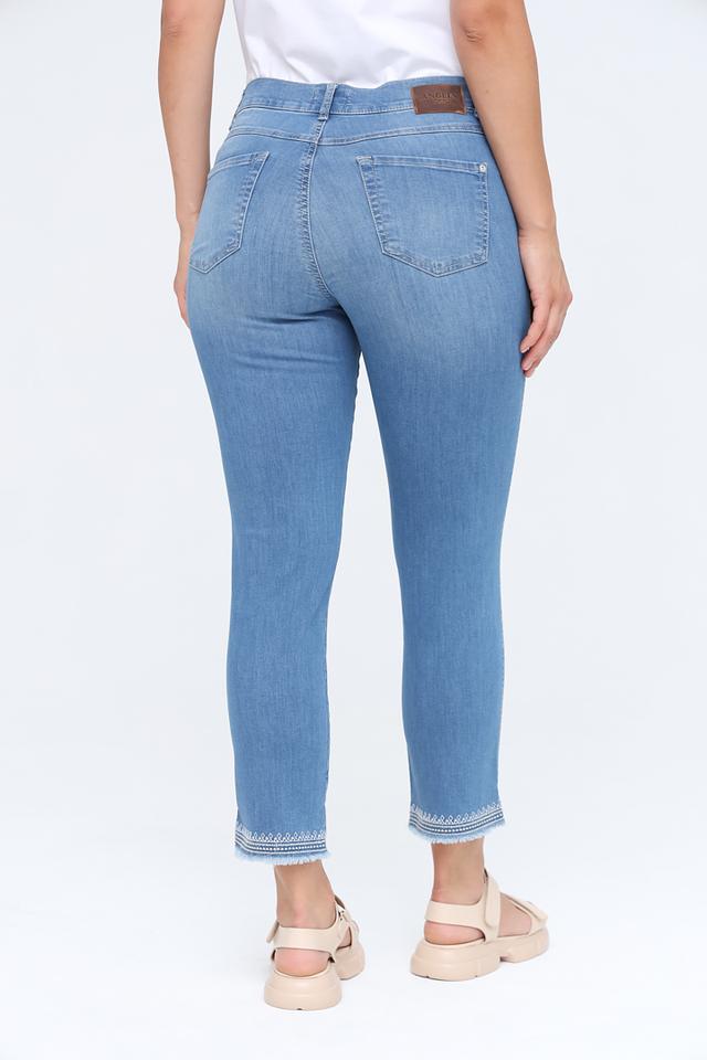 Особенности дизайна включают аккуратную отделку края штанин бахромой и декоративную вышивку в нижней части. Пять карманов — два спереди и три сзади — добавляют функциональности. Застежка — молния и пуговица. Джинсы Angels идеально подойдут для создания разнообразных образов в повседневном стиле.