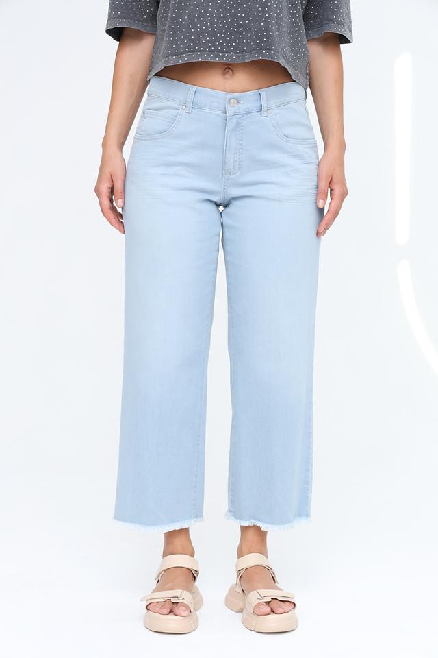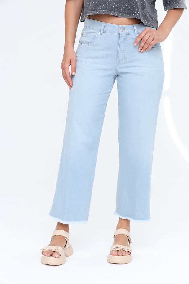 Представляем вашему вниманию стильные джинсы от бренда Angels. Эта модель выполнена в нежном голубом цвете и имеет крой кюлоты, который сейчас находится на пике популярности.