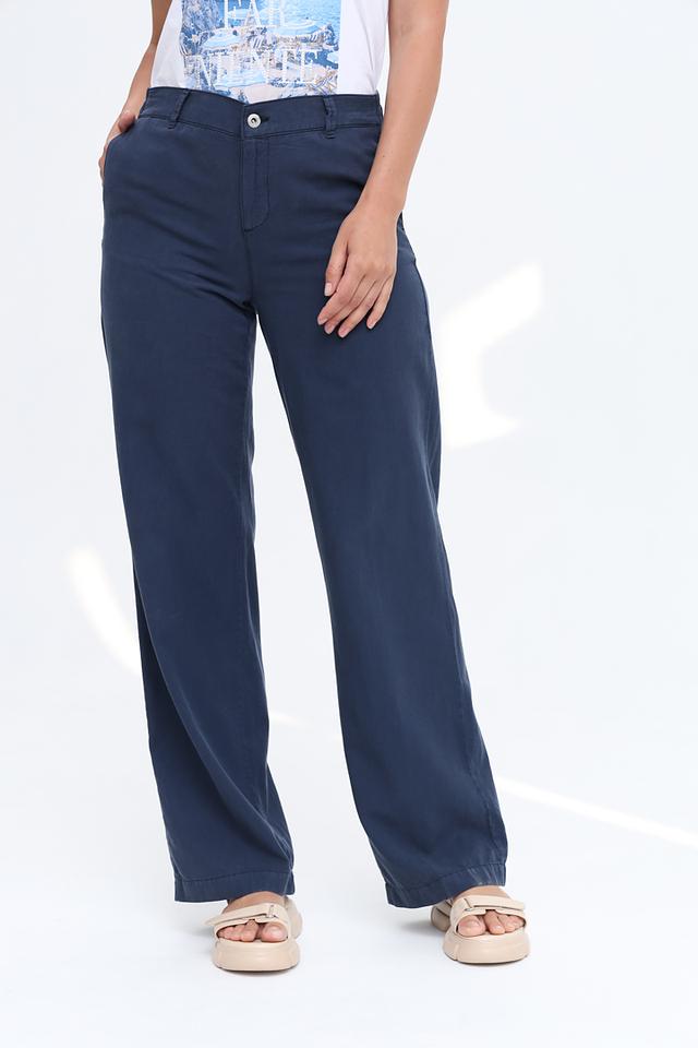 Синие брюки Angels прямого кроя — удобная и стильная модель на каждый день. Брюки выполнены из хлопка с добавлением лиоцела, что обеспечивает комфорт и приятные тактильные ощущения. Состав: хлопок 52%, лиоцел 48%