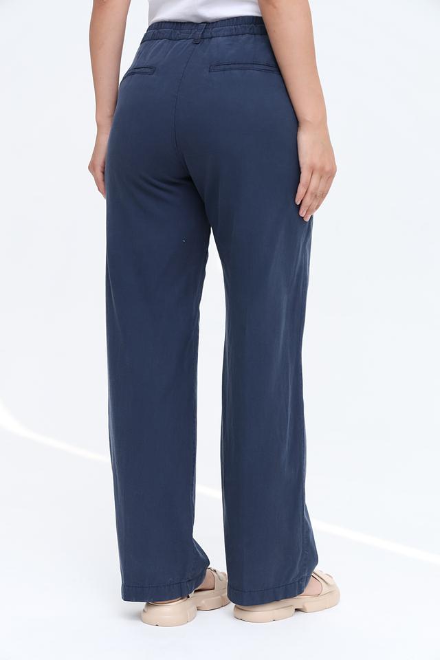 Состав ткани: 52% хлопок, 48% лиоцел. Хлопок обеспечивает воздухопроницаемость и мягкость, а лиоцел — приятные тактильные ощущения и устойчивость к сминанию. Брюки практичны в уходе и долговечны.