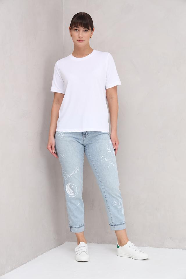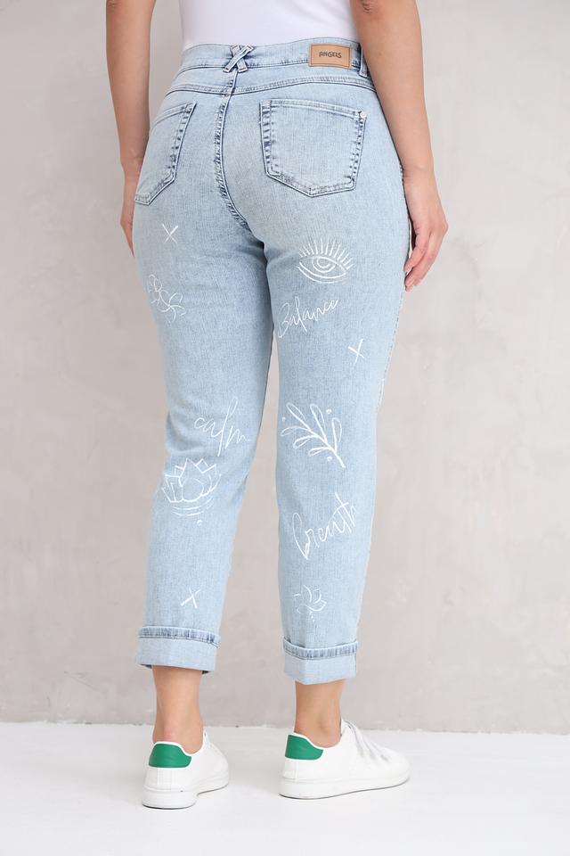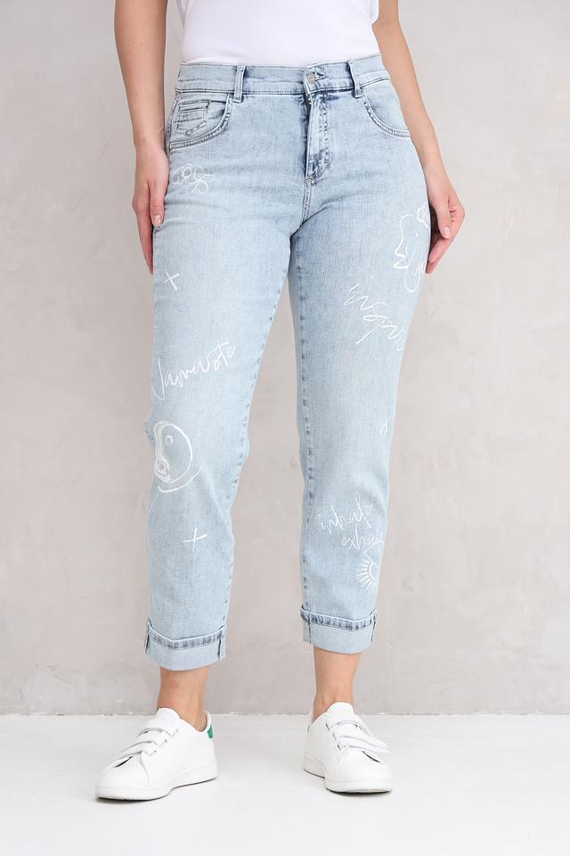 Эти джинсы от Angels станут ярким акцентом в вашем гардеробе. Выполнены в светло-голубом цвете и украшены авторским принтом в виде рисунков и надписей.