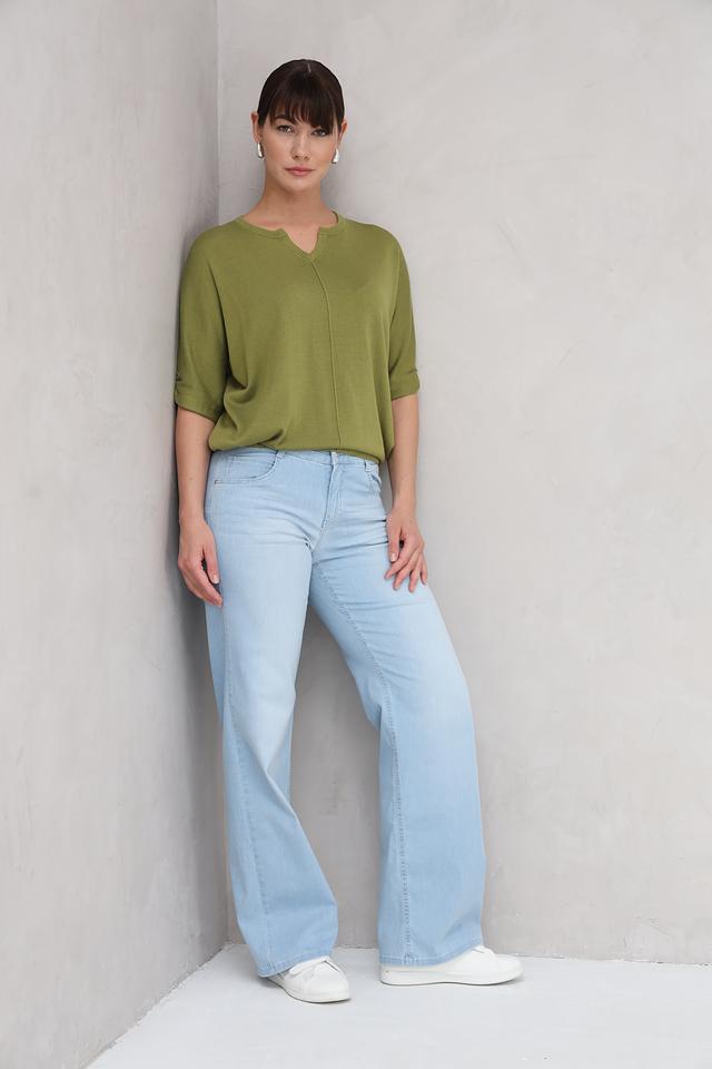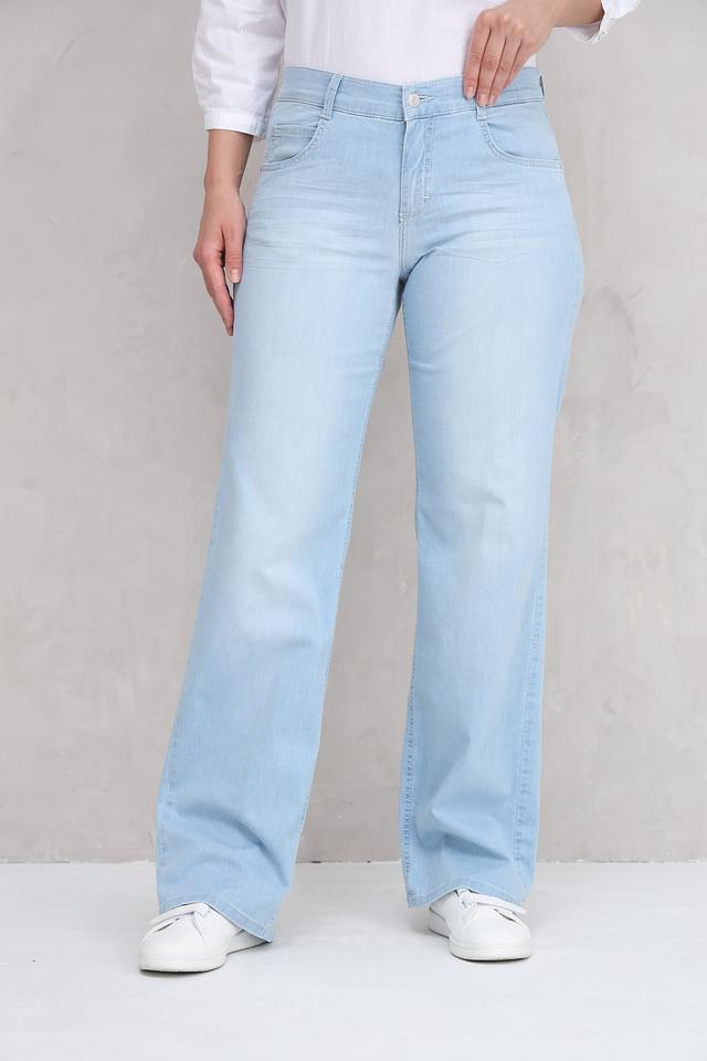 Представляем вашему вниманию стильные джинсы от бренда Angels. Эта модель выполнена в нежном голубом цвете и имеет классический крой клеш, который визуально удлиняет ноги и создает женственный силуэт.
