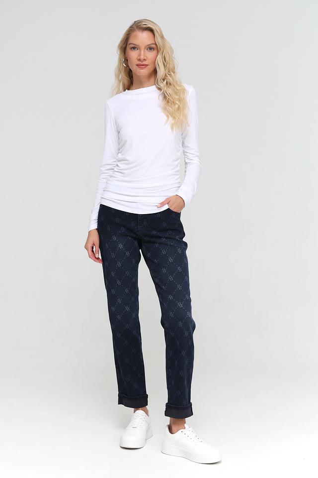 Джинсы имеют укороченный крой и слегка зауженный силуэт, который подчеркивает фигуру и обеспечивает комфортную посадку. Плотный хлопок в составе ткани гарантирует долговечность и износостойкость, а добавление полиэстера и эластана обеспечивает эластичность и удобство в носке.