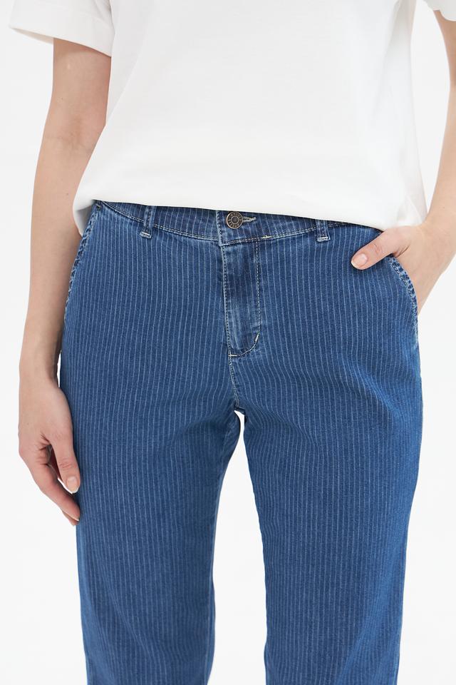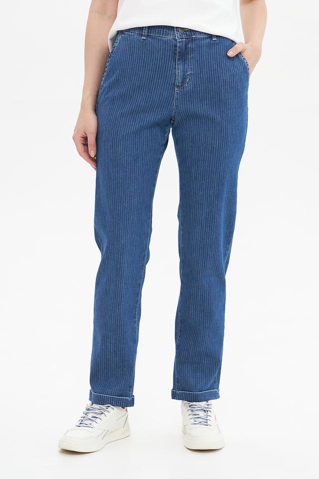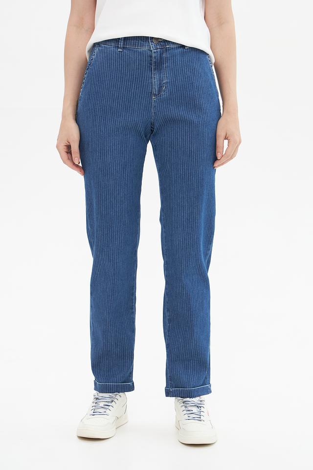 Представляем вашему вниманию джинсы от бренда Angels. Модель выполнена в синем цвете с выразительным вертикальным рисунком в полоску.