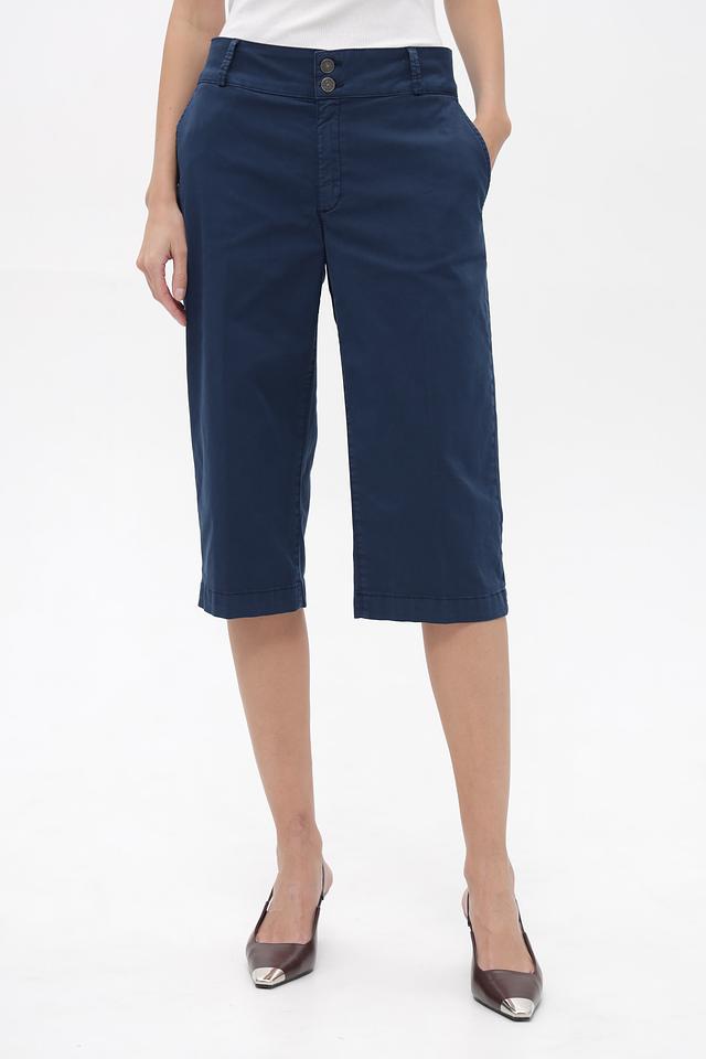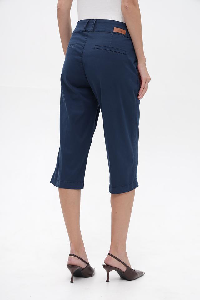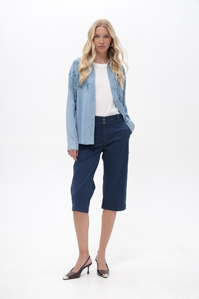 Шорты имеют классический прямой крой и стандартную посадку по талии. Застежка на молнию и пуговицы. На передней части расположены функциональные карманы. Сзади – накладные карманы с декоративной отделкой.