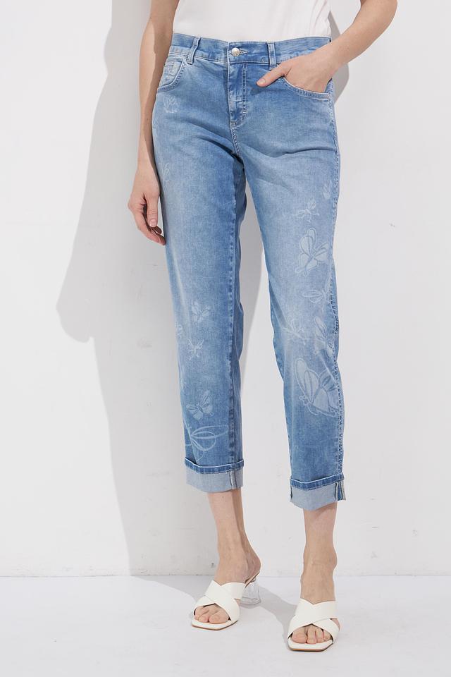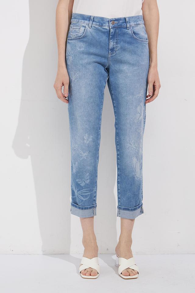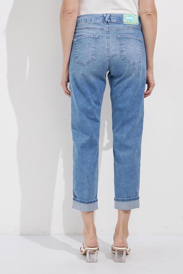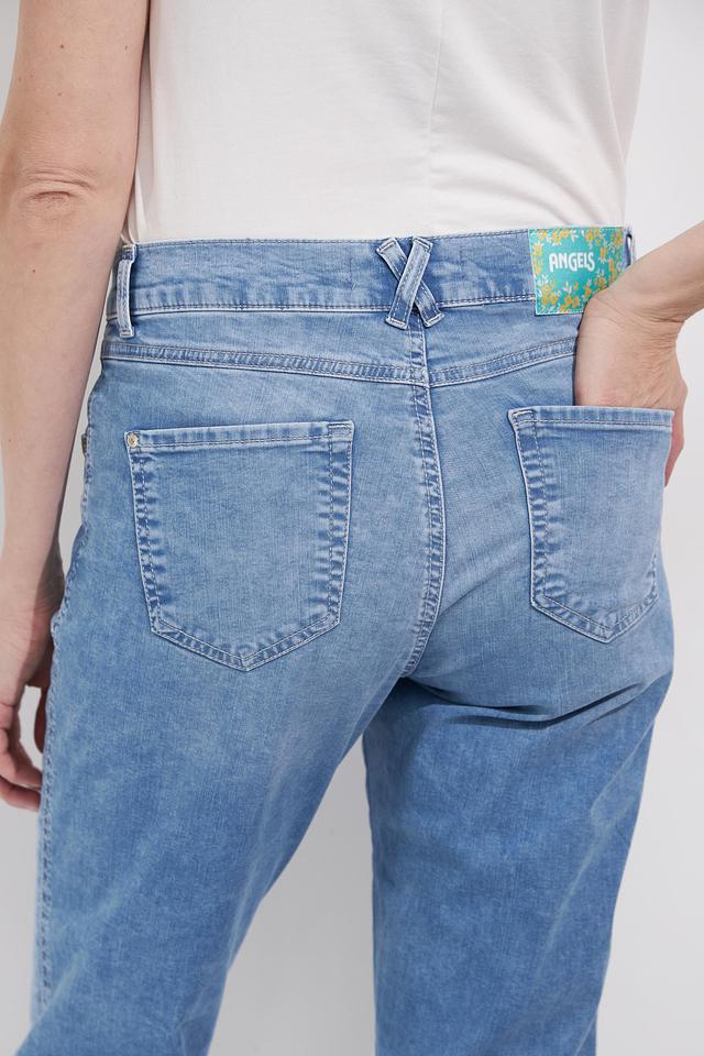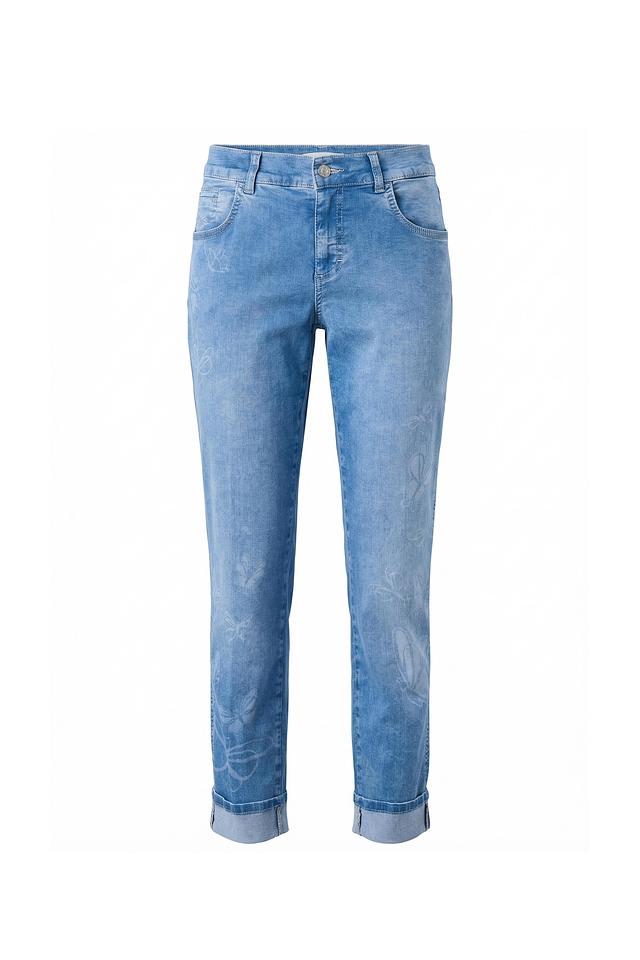 Голубые джинсы Angels с цветочной вышивкой — стильное и комфортное решение для повседневного образа. Модель с зауженным к низу кроем и необработанным краем. Состав: хлопок 89%, полиэстер 8%, эластан 3%