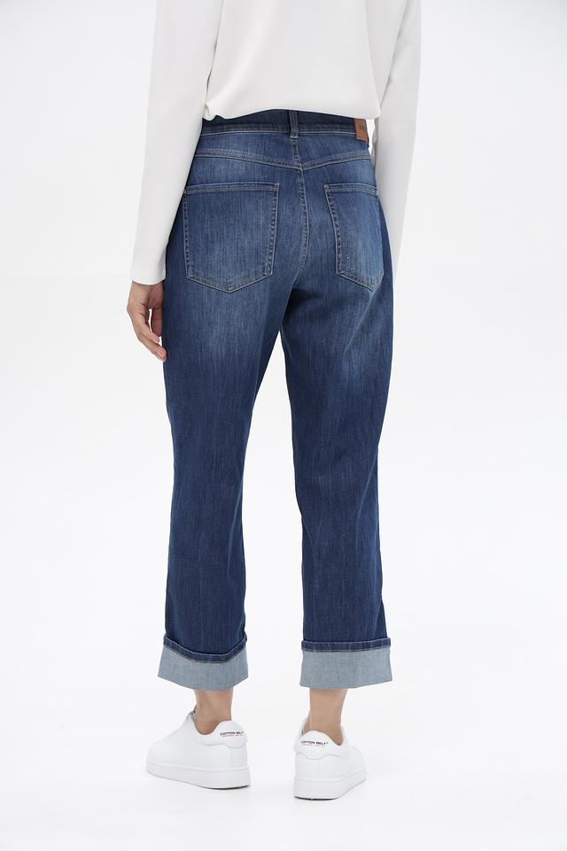 Потертости и эффект легкого выцветания придают джинсам винтажный вид. Штанины слегка подвернуты, что придает образу непринужденность и современность. Завершает образ кожаный логотип бренда Angels на заднем поясе.