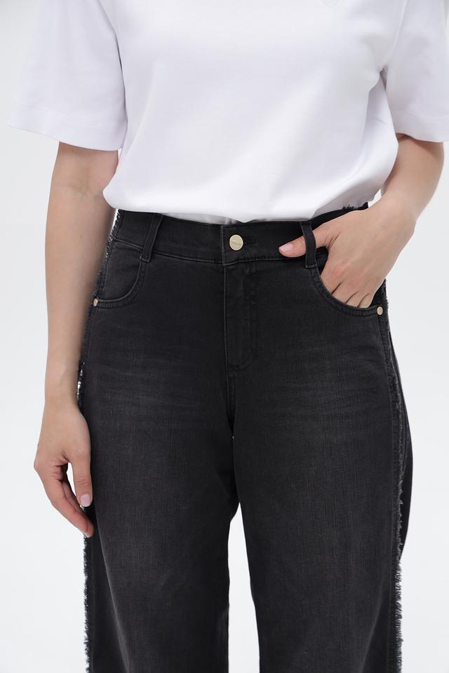 Классический пятикарманный крой дополнен декоративными разрезами на штанинах с необработанными краями, добавляющими оригинальности. Изготовлены из высококачественного хлопка с добавлением полиэстера и эластана, что обеспечивает комфорт в носке и хорошую посадку по фигуре.