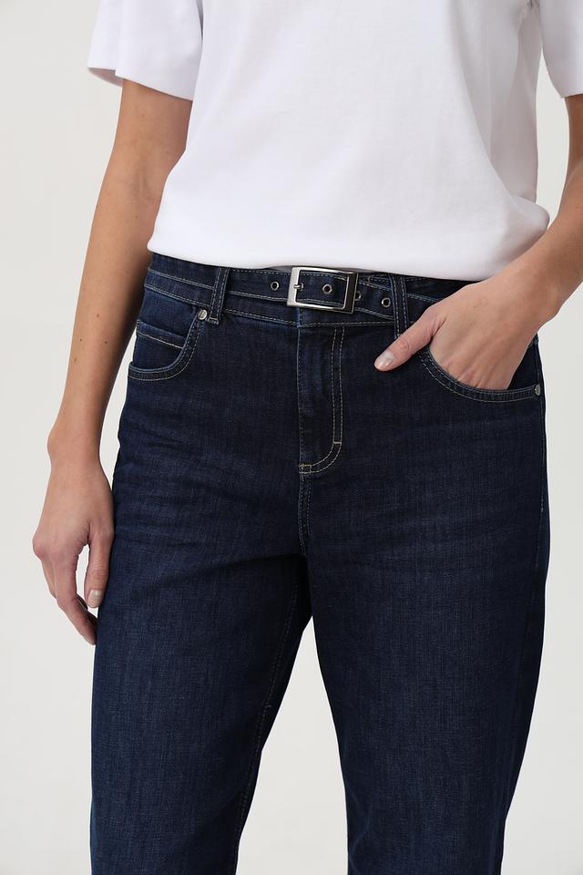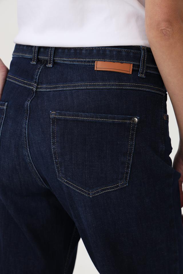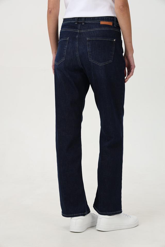 Джинсы имеют стандартную посадку, подчеркивающую фигуру, и удобный крой, обеспечивающий свободу движений. Пятикарманный дизайн и пояс с шлевками для ремня делают их универсальными для создания различных образов.