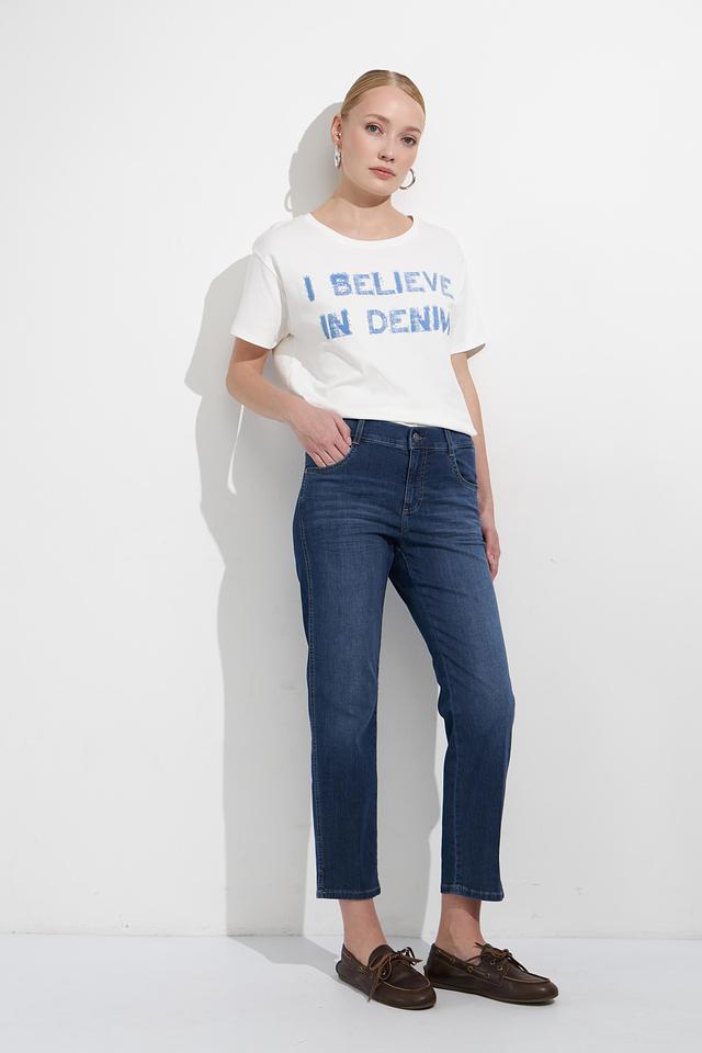 Синие джинсы Angels с оригинальной вышивкой по боковым швам — стильное и комфортное решение для повседневного образа. Модель выполнена из качественного хлопка с добавлением полиэстера и эластана. Состав: хлопок 89%, полиэстер 8%, эластан 3%