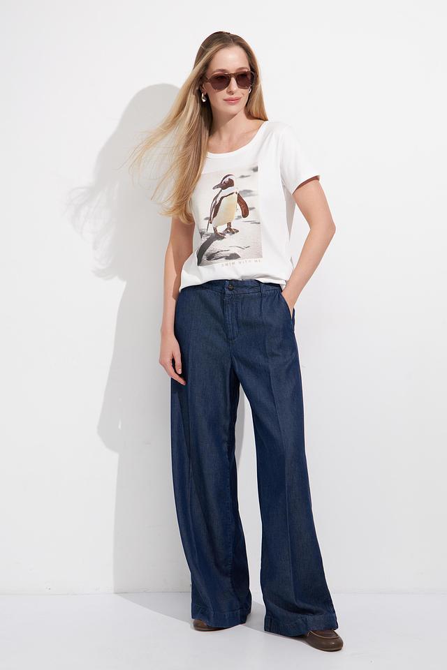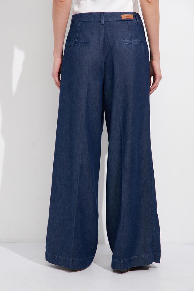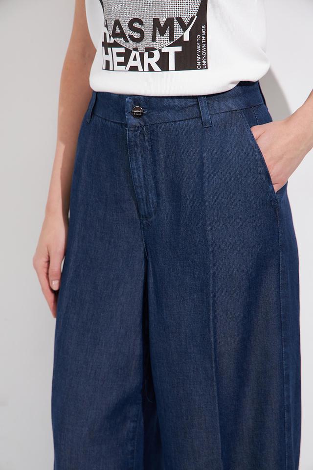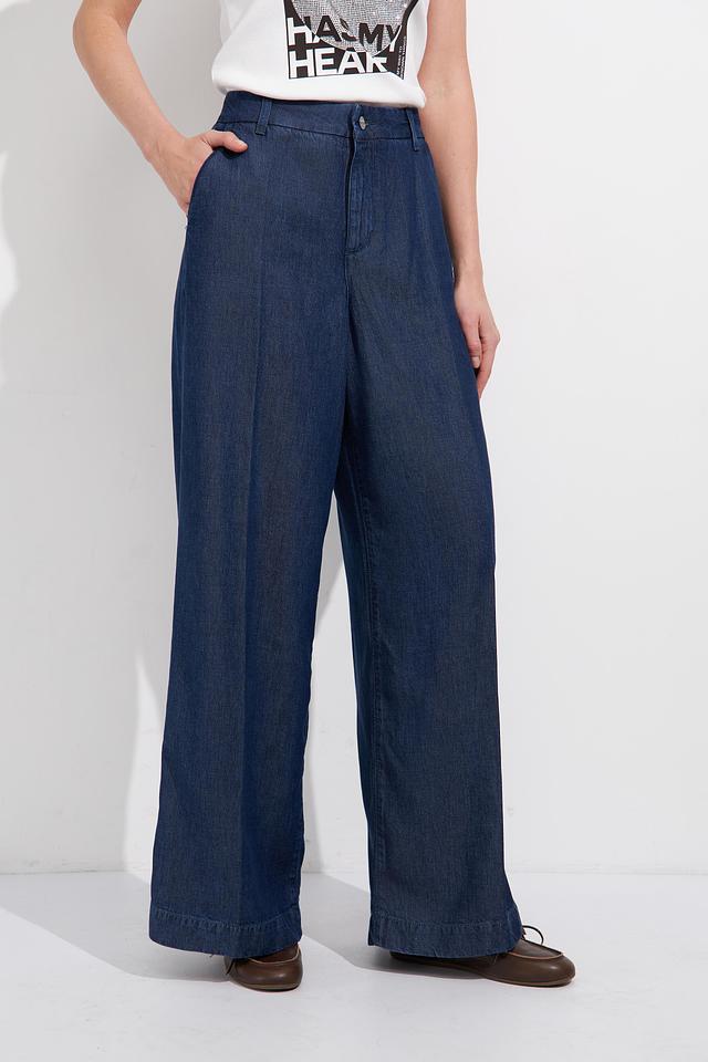 Джинсы изготовлены из высококачественного лиоцела – экологически чистого и приятного к телу материала. Лиоцел обладает отличной воздухопроницаемостью и мягкостью, обеспечивая максимальный комфорт при носке. Высокая посадка подчеркивает талию и создает элегантный силуэт.