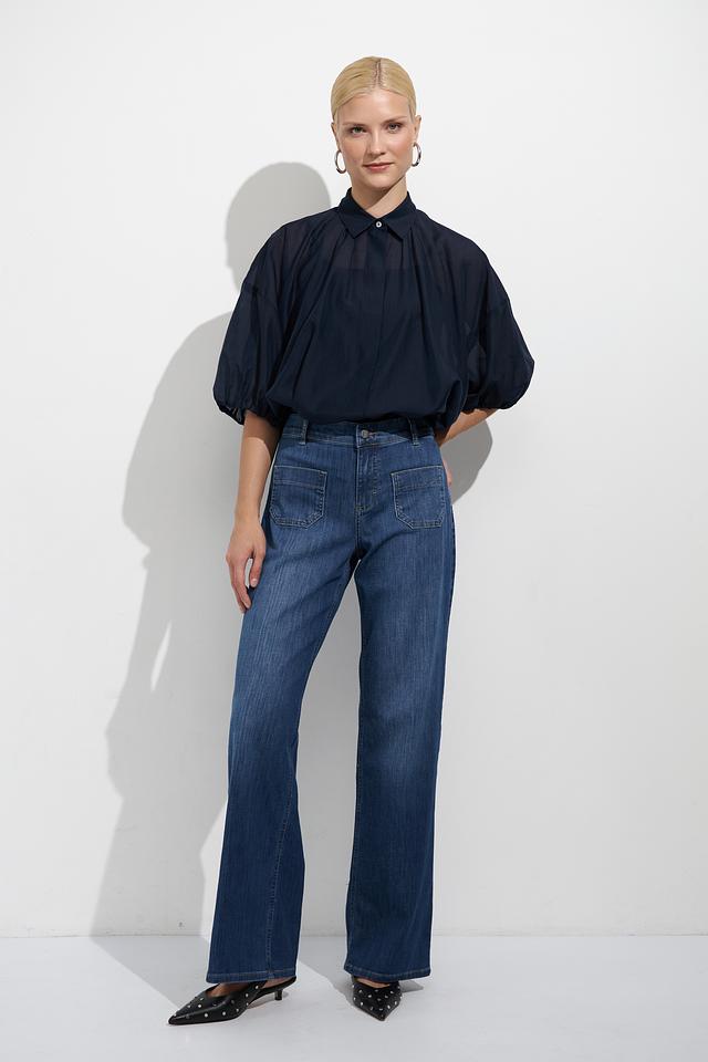 Джинсы имеют прямой крой, который обеспечивает свободу движений и подходит для любой фигуры. Высокая посадка подчеркивает талию и визуально удлиняет ноги. Плотный деним обеспечивает долговечность и комфорт при носке.