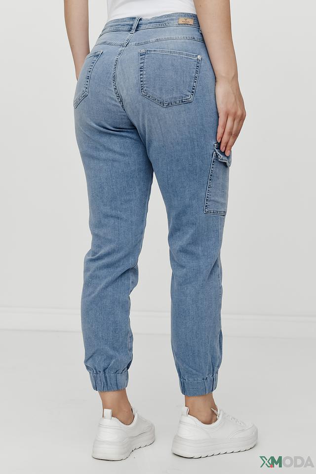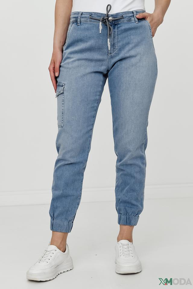 Джинсы имеют стандартную посадку, пояс на резинке с завязками, что обеспечивает комфорт при носке. На передней части брюк расположен накладной карман. Задние карманы классической формы.
